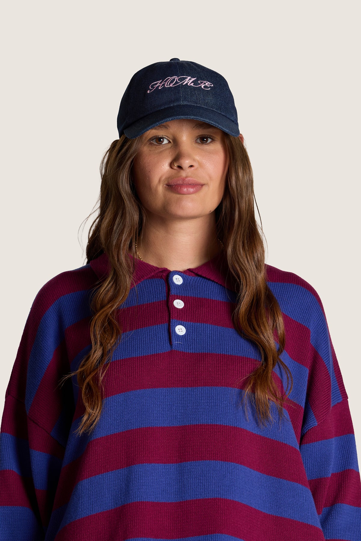 Details: Adjustable back strap, Metal "Monogram Logo" detailing. Embroidery to front. Lilac embroidery on the front