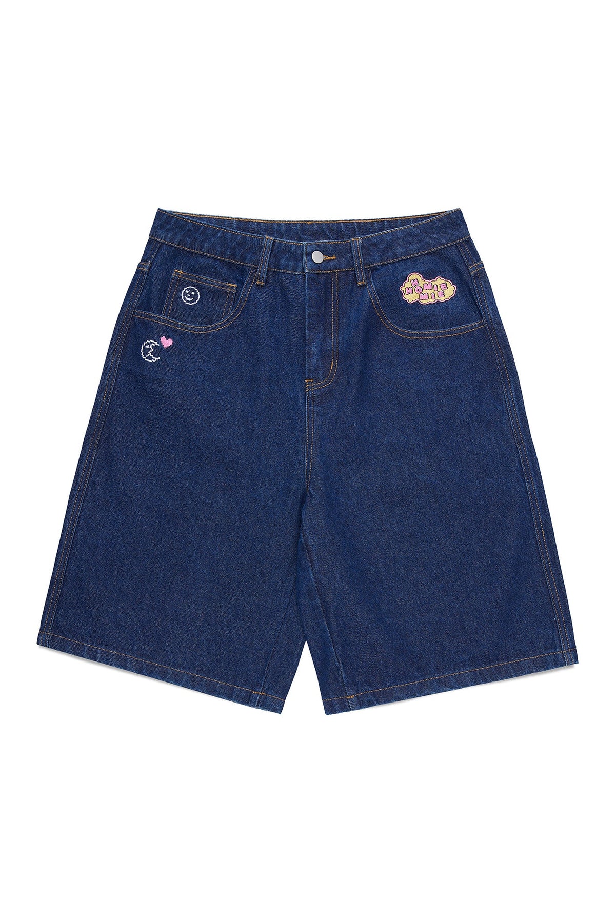 Part of THE GETAWAY EDIT collection, the Creating Nostalgia Jorts in dark indigo are made from 450GSM Denim in a comfy boxy fit. A perfect addition to any summer outfit.