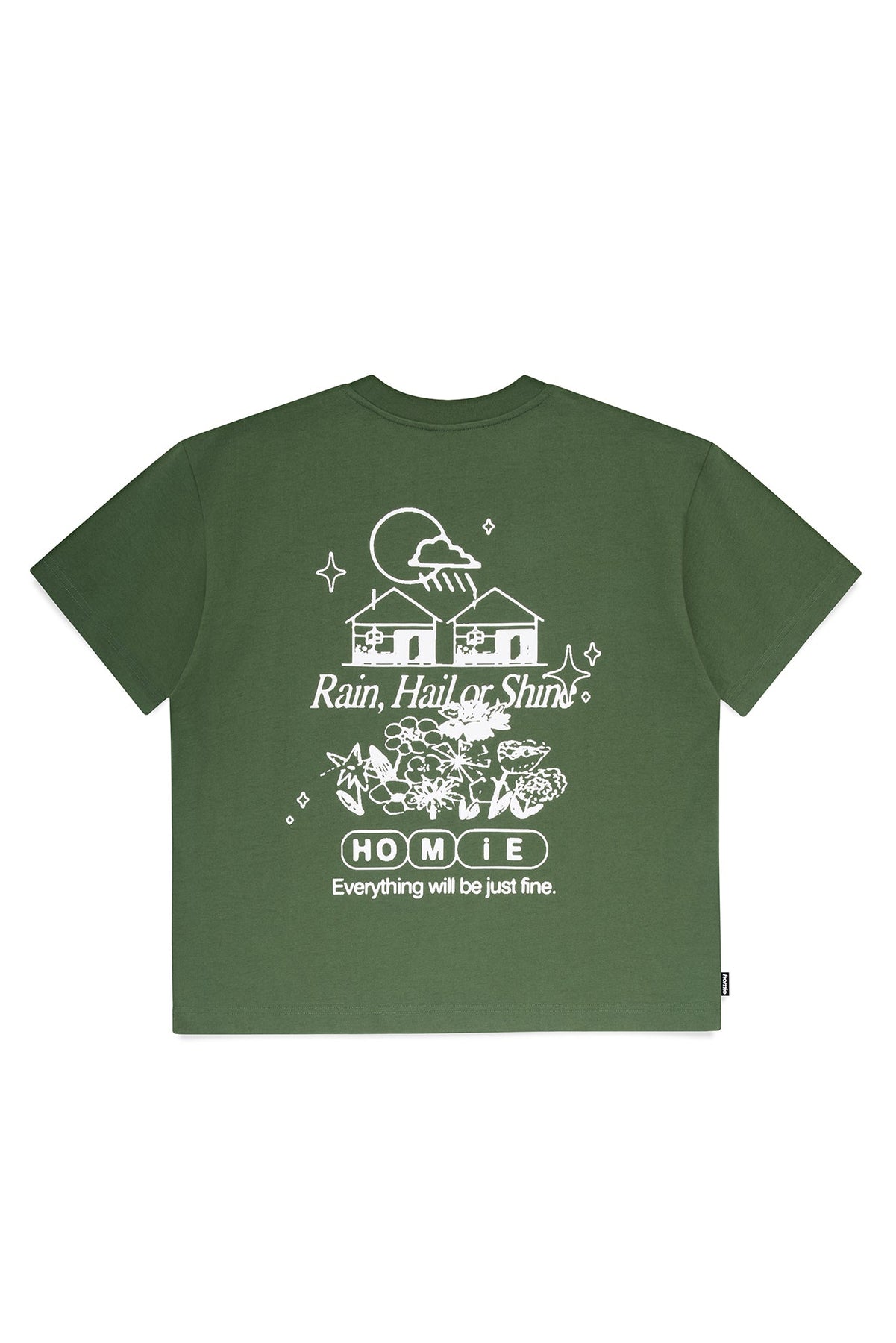 Part of gTHE GETAWAY EDIT collection, the Rain, Hail or Shine tee in forest green is made from a comfy 230GSM Cotton in our new boxy fit and features a printed graphic with embroidery on the front chest.