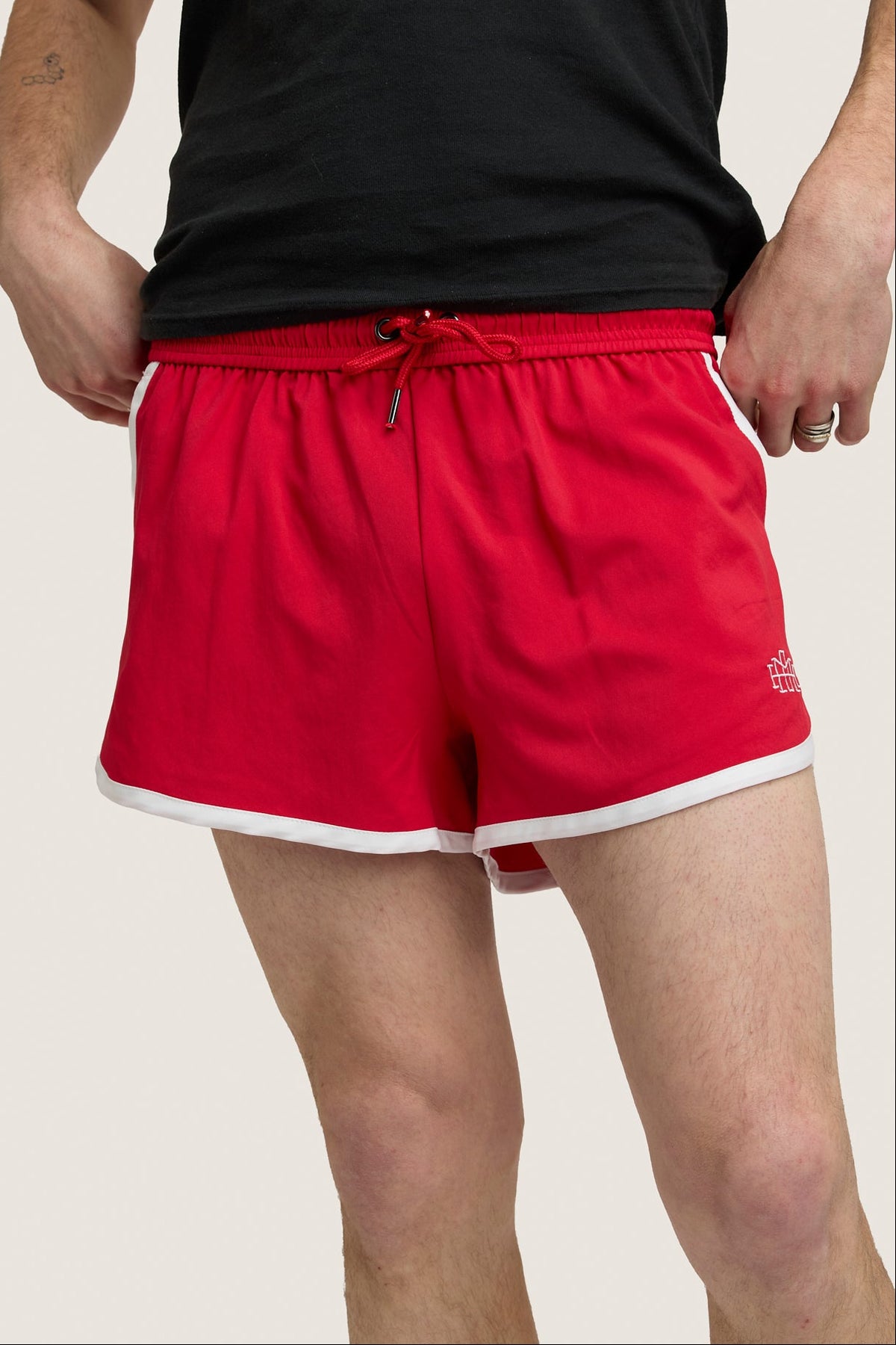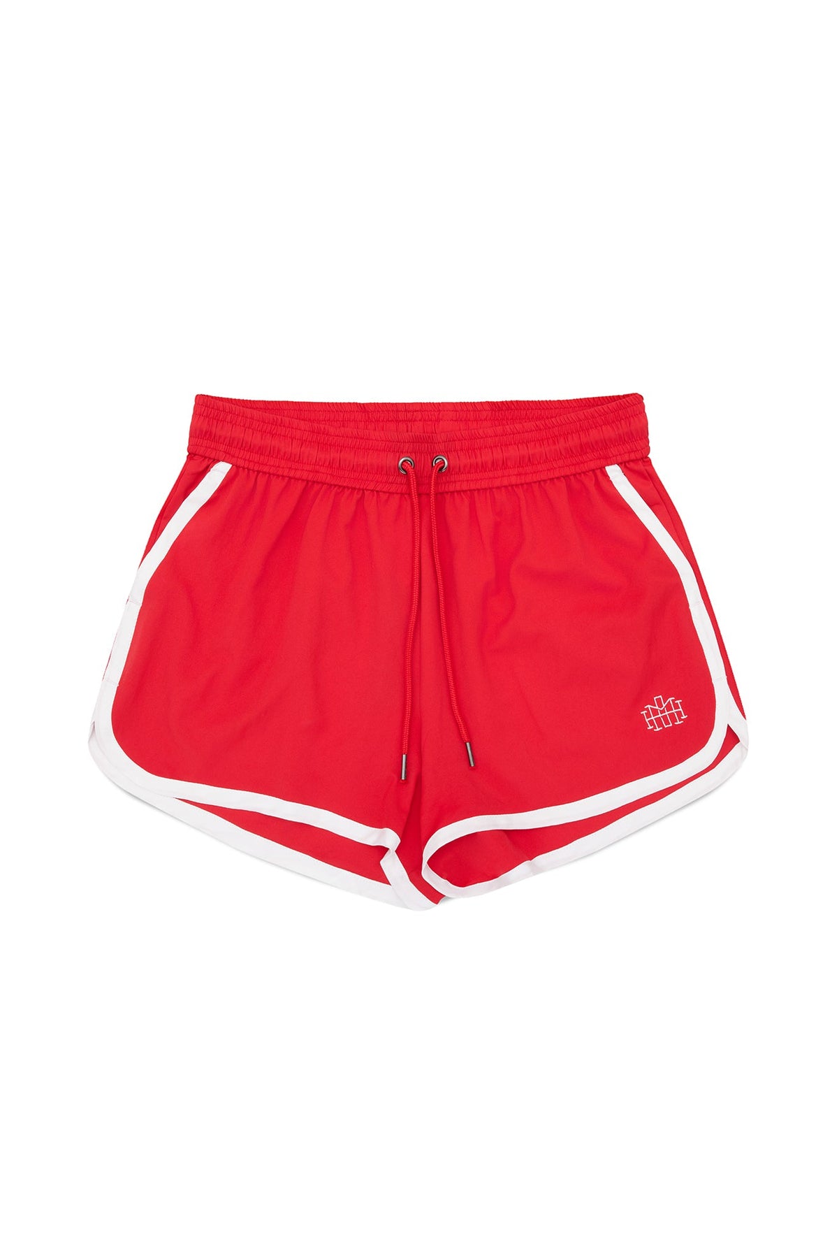 Part of THE GETAWAY EDIT collection, the track shorts in cherry red features side pockets, draw string, a monogram embroidery and contrast binding.