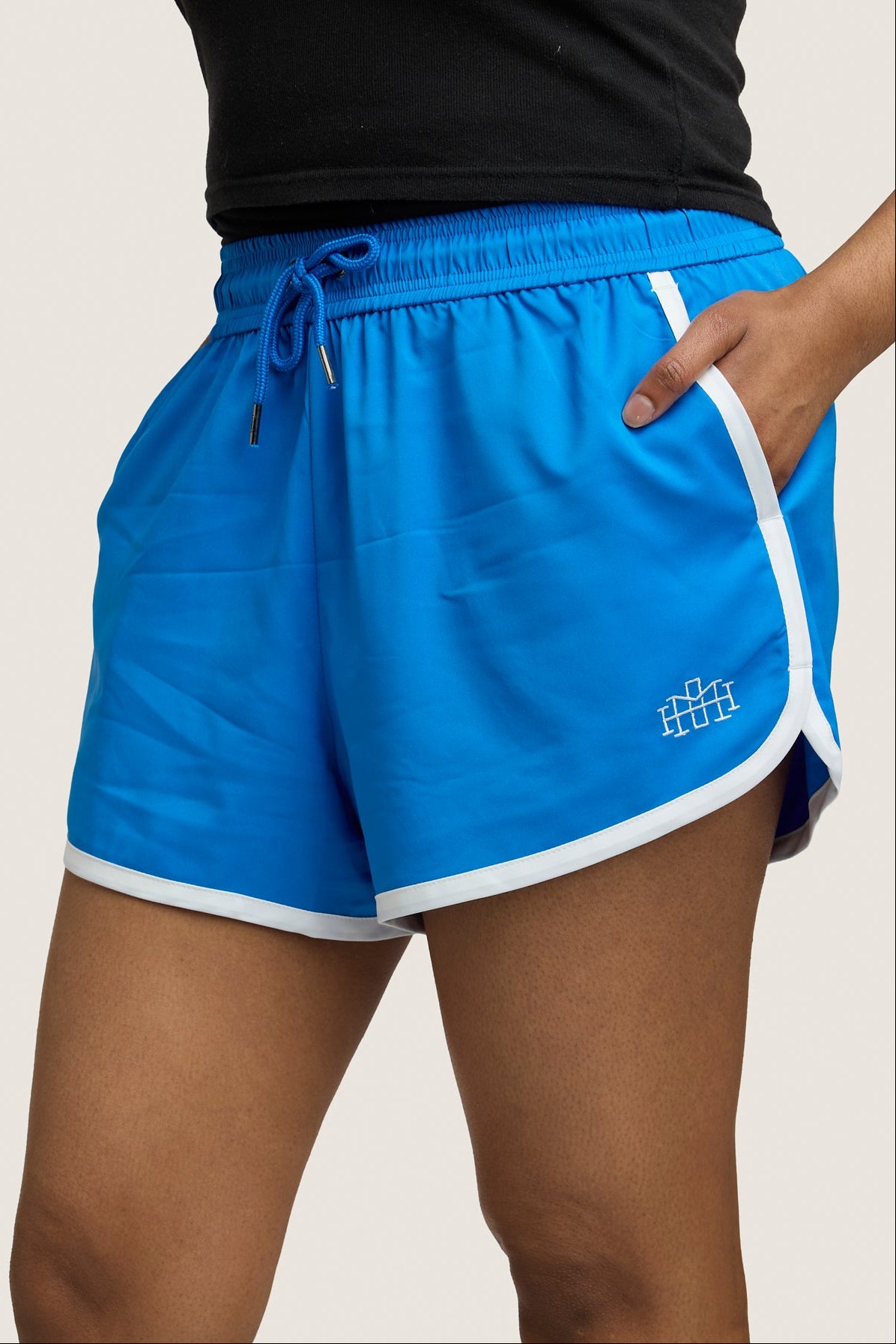 Part of our SS25 collection THE ESSENTIALS, the track shorts in royal blue features side pockets, draw string, a monogram embroidery and contrast binding.